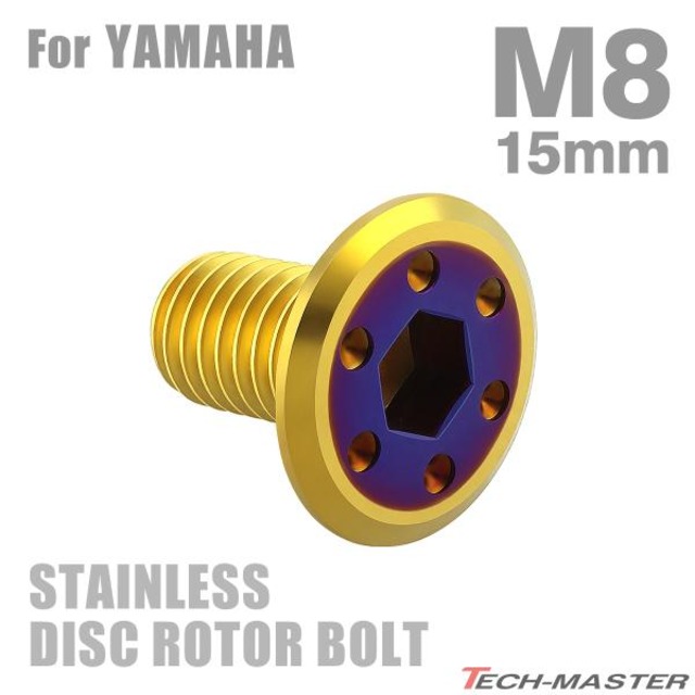 ブレーキディスク ローターボルト M8×15mm P1.25 ヤマハ用 フラットヘッド ステンレス ゴールドカラー TD0141