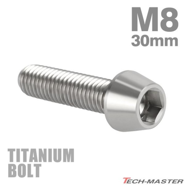 チタンボルト M8×30mm P1.25 テーパーヘッド 六角穴付き キャップボルト シルバーカラー JA126
