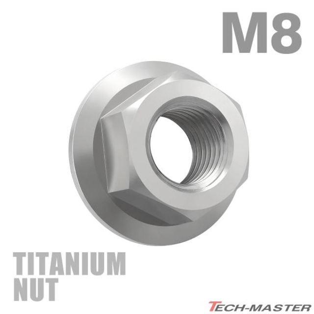 チタンナット M8 P1.25 六角ナット デザインナット フランジ付き セレート無し シルバーカラー 1個 JA597