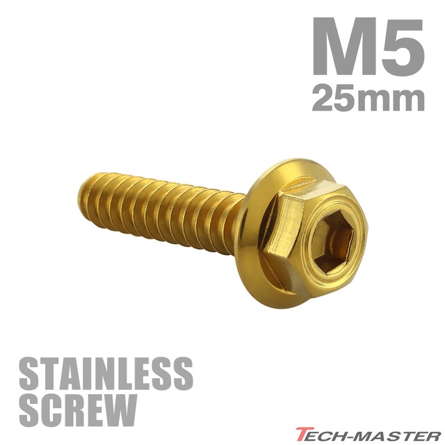 ステンレスネジ M5×25mm タッピングビス 六角穴 シンヘキサゴンヘッド ゴールドカラー 1個 TC0055