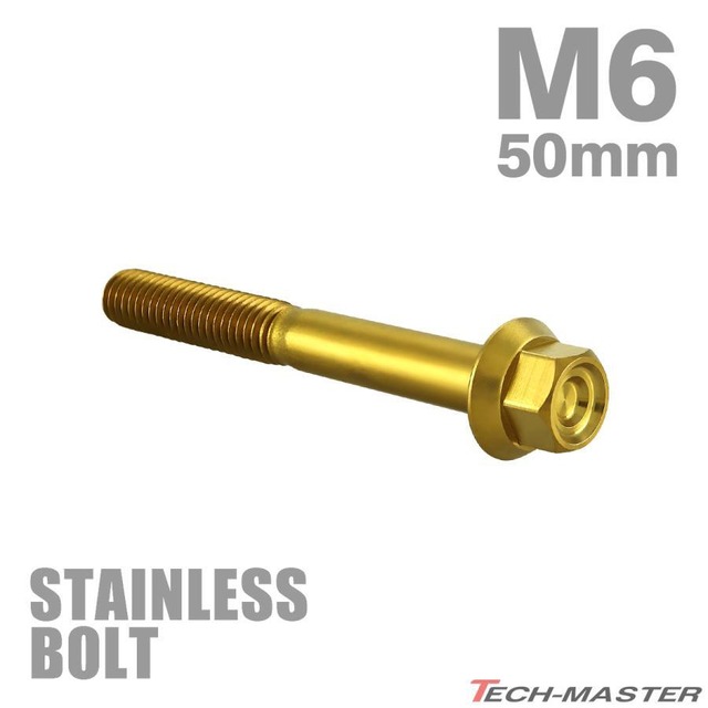 ステンレスボルト M6×50mm P1.0 フランジ付き 六角ボルト CNC ヘキサゴンヘッド ゴールドカラー TB1279