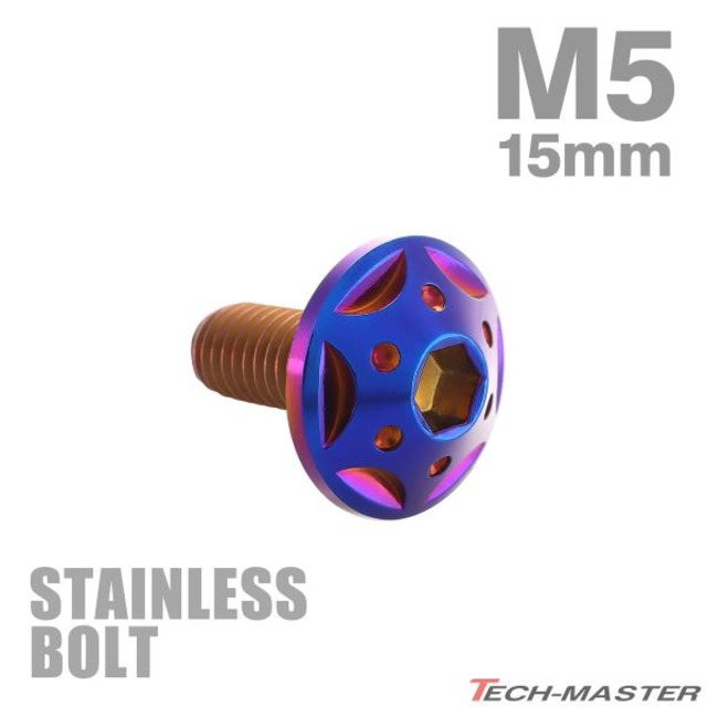 ステンレスボルト M5×15mm P0.8 ボタンボルト スターホールヘッド 焼きチタンカラー TR0243