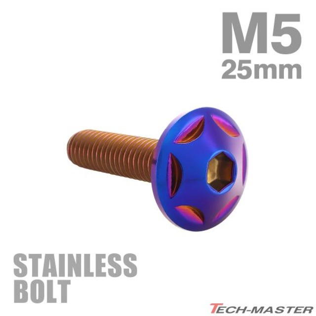 ステンレスボルト M5×25mm P0.8 ボタンボルト スターヘッド 焼きチタンカラー TR0035