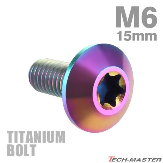 チタンボルト M6×15mm P1.0 テーパーヘッド トルクス穴 ボタンボルト 焼きチタンカラー 虹色 1個 JA629