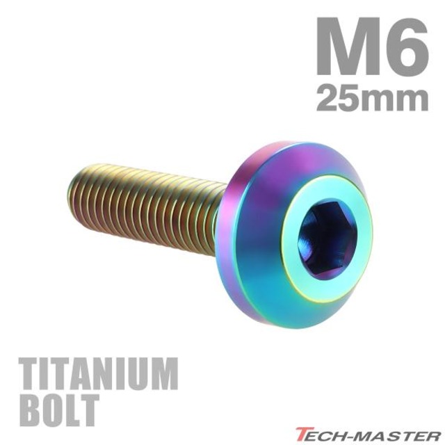 64チタンボルト M8×25mm P1.25 頭部径16mm六角穴 ホールヘッド ボタンボルト 焼きチタンカラー 虹色 1個 JA163