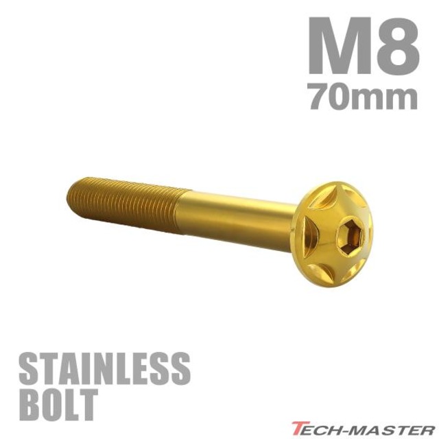 ステンレスボルト M8×70mm P1.25 ボタンボルト スターヘッド ゴールドカラー TR0524