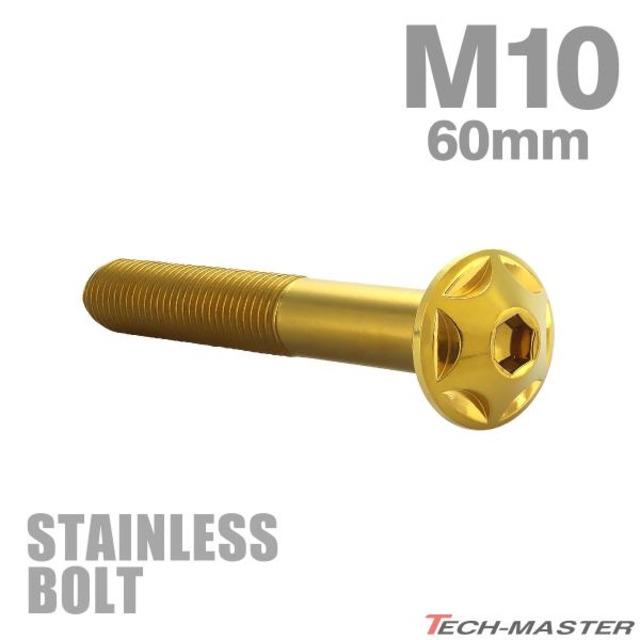 ステンレスボルト M10×60mm P1.25 ボタンボルト スターヘッド ゴールドカラー TR0622