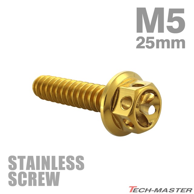 ステンレスネジ M5×25mm タッピングビス 六角穴 ステップホールヘッド ゴールドカラー 1個 TC0115