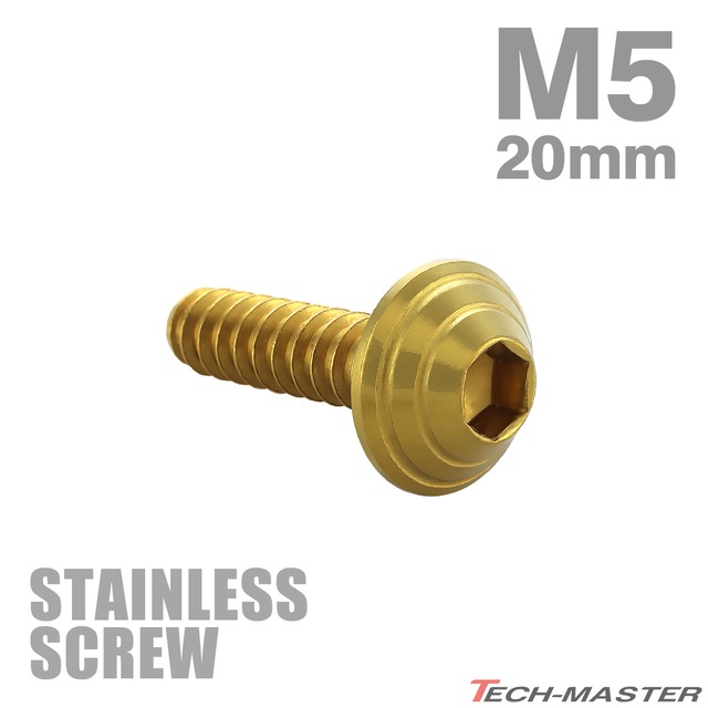 ステンレスネジ M5×20mm タッピングビス 六角穴 ホールヘッド ゴールドカラー 1個 TC0069
