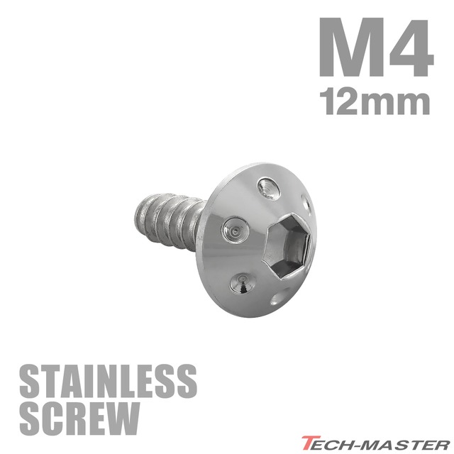 ステンレスネジ M4×12mm タッピングビス 六角穴 フラットシェルヘッド シルバーカラー 1個 TC0151