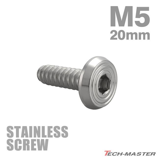 ステンレスネジ M5×20mm タッピングビス 六角穴 フラットシェルヘッド シルバーカラー 1個 TC0154