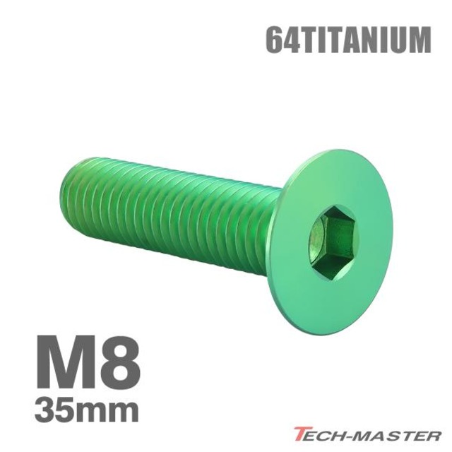 チタンボルト M8×35mm P1.25 皿ボルト 六角穴付き キャップボルト グリーン 1個 JA1612