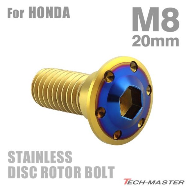 ブレーキディスク ローターボルト M8×20mm P1.25 ホンダ用 スターホールヘッド ステンレス ゴールドカラー&ブルー TD0356