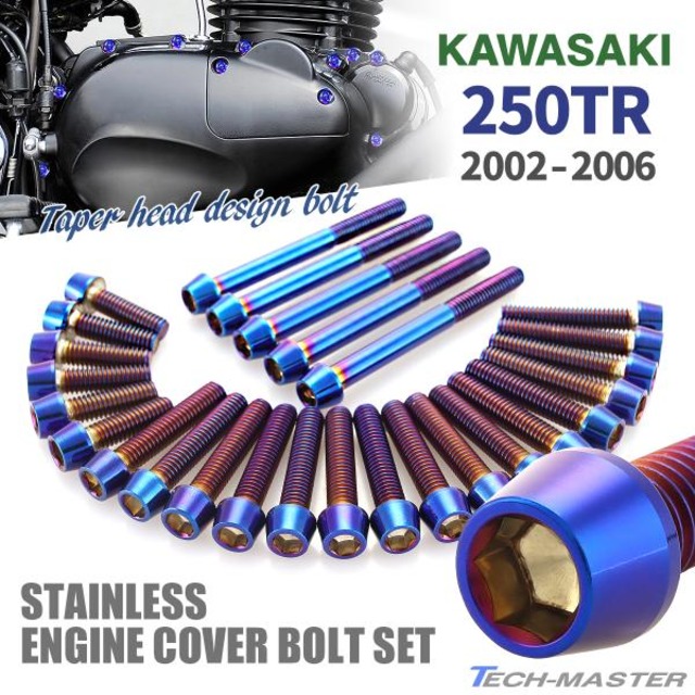 250TR 2002年〜2006年 エンジンカバー クランクケース ボルト 27本セット ステンレス製 カワサキ車用 焼きチタンカラー TB8260