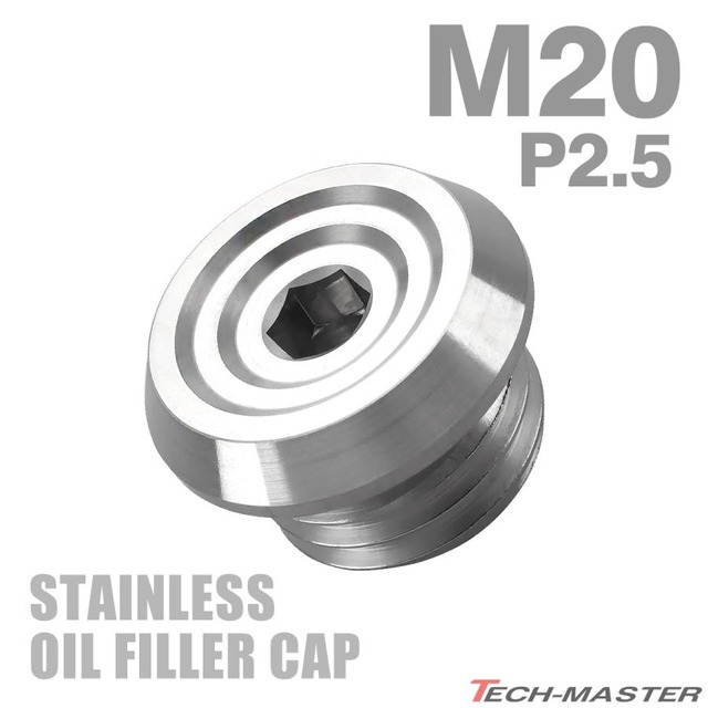 オイルフィラーキャップ M20 P2.5 汎用 ホンダ ヤマハ カワサキ等 ステンレス シルバーカラー TH0482