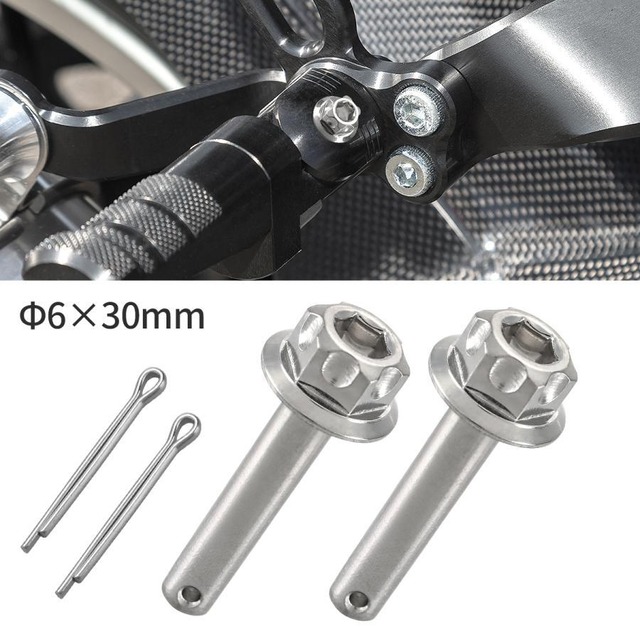 バイク ステップピン シルバーカラー 2本セット 割りピン付 Φ6×30mm ヘキサゴンヘッド ステンレス TH0766