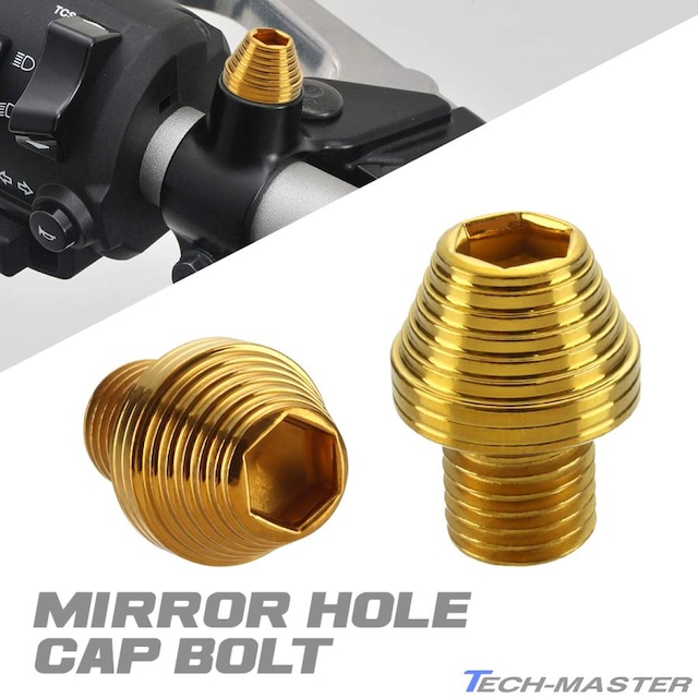 ミラーホールキャップ 正ネジ 逆ネジ M10×10mm P1.25 2個セット ヤマハ車用 サイドホールヘッド ゴールド TH0636