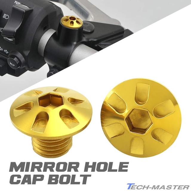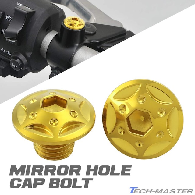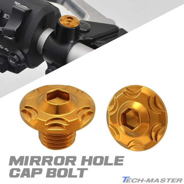 ミラーホールキャップ 正ネジ M10×10mm P1.25 2個セット ホンダ車用 デザインヘッド ゴールド TH0639