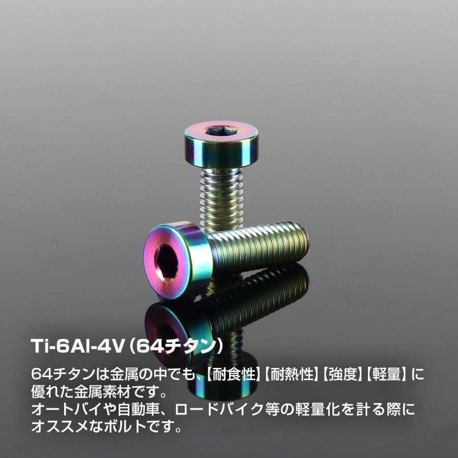 チタンボルト M6×20mm P1.0 ストレートキャップボルト 低頭 スリムヘッド 六角穴付き レインボー 1個 JA2408