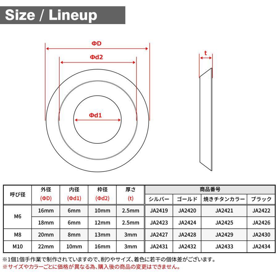 チタンワッシャー M6 外径18mm 枠径12mm フジツボ型ワッシャー シルバーカラー 1個 JA2423
