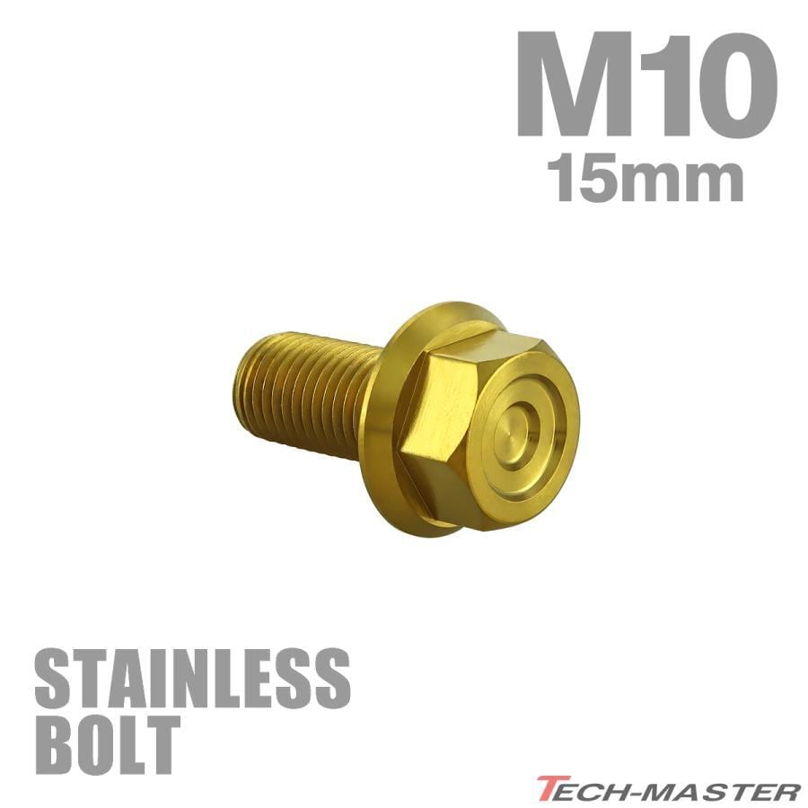 ステンレスボルト M10×15mm P1.25 フランジ付き 六角ボルト CNC ヘキサゴンヘッド ゴールドカラー TB1169