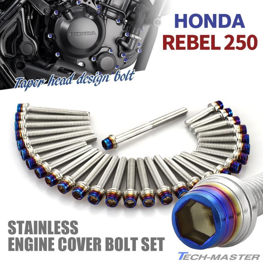レブル250 REBEL 2023年〜 エンジンカバー クランクケース ボルト 29本セット ステンレス製 シルバー×焼きチタンカラー TB12186
