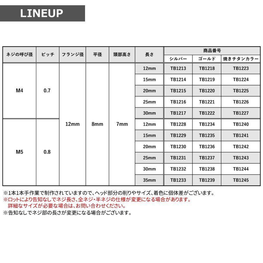 ステンレスボルト M4×25mm P0.7 フランジ付き 六角ボルト CNC ヘキサゴンヘッド 焼きチタンカラー TB1226
