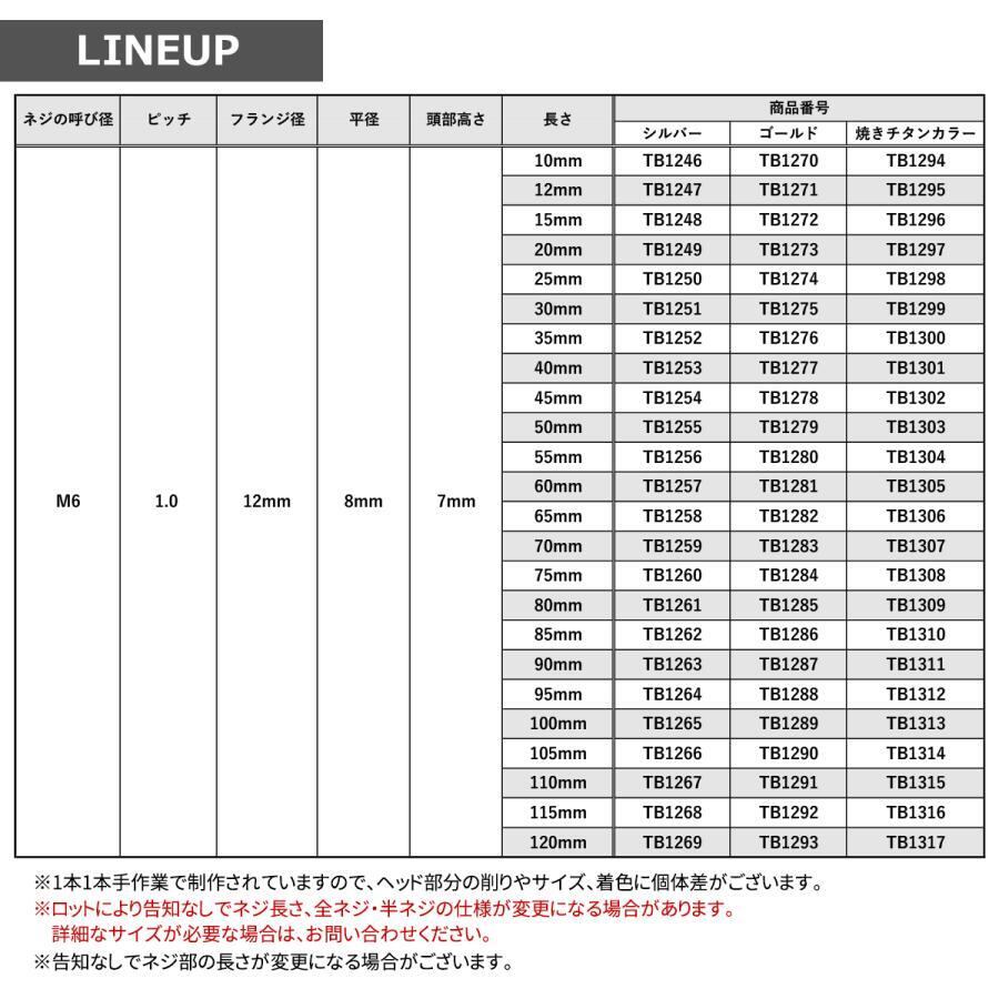 ステンレスボルト M6×115mm P1.0 フランジ付き 六角ボルト CNC ヘキサゴンヘッド ゴールドカラー TB1292