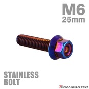 ステンレスボルト M6×25mm P1.0 フランジ付き 六角ボルト CNC ヘキサゴンヘッド 焼きチタンカラー TB1298