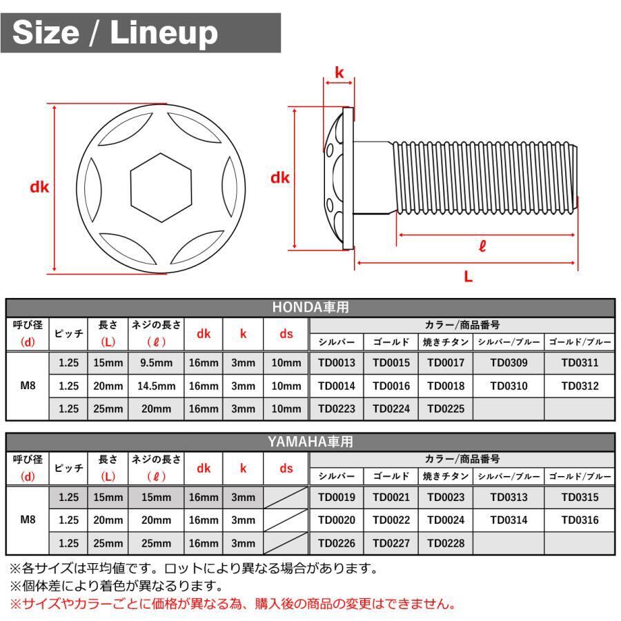 ブレーキディスク ローターボルト M8×25mm P1.25 ホンダ用 スターヘッド ステンレス ゴールドカラー TD0224