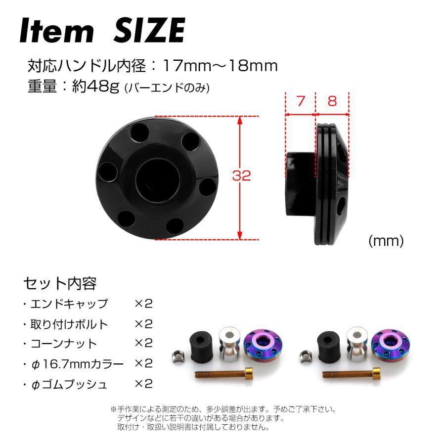 バイク バーエンド キャップ ステンレス グリップエンド 左右セット レインボー TH0425