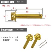 バイク ステップピン ゴールドカラー 2本セット 割りピン付 Φ6×36mm フラワーヘッド ステンレス TH0764