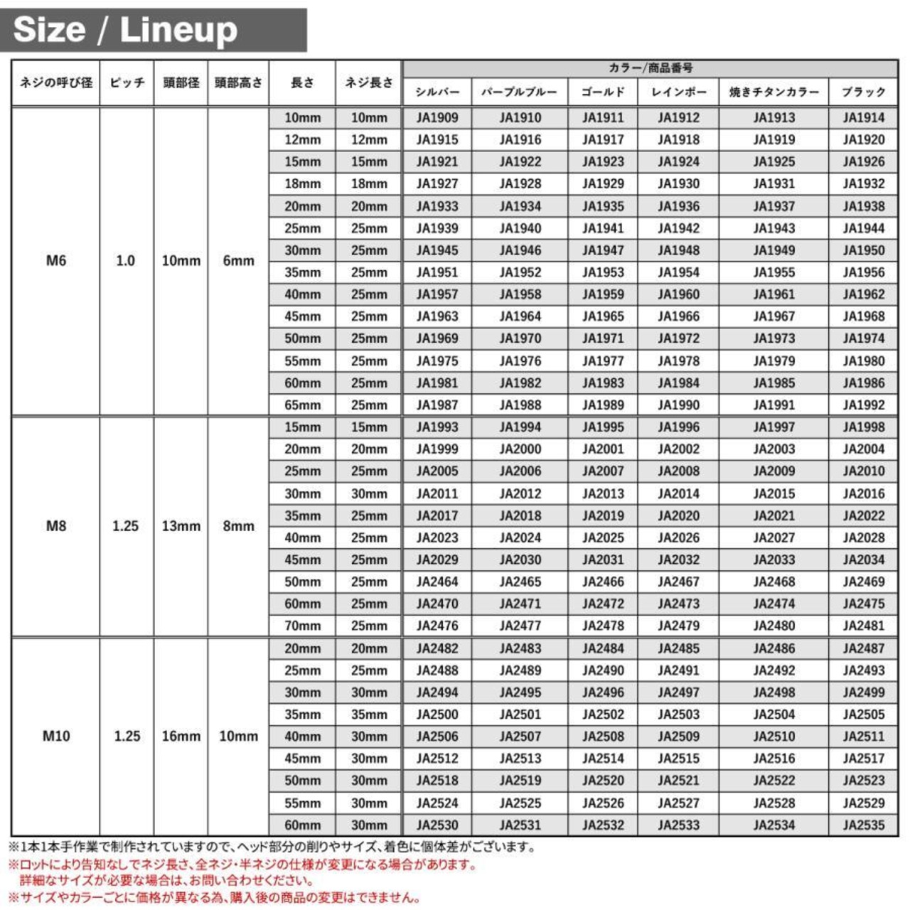 ※サイズやカラーごとに価格が異なる為、購入後の商品の変更はできません。