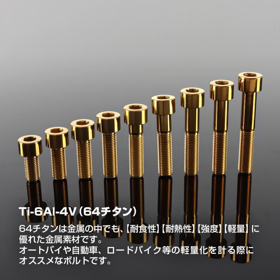 チタンボルト M10×60mm P1.25 ストレートキャップボルト スリムヘッド 六角穴付き ゴールド 1個 JA2532