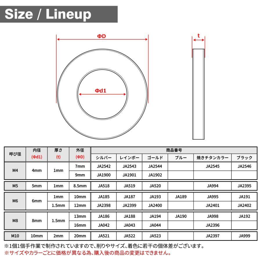 チタンワッシャー M4 外径7mm 内径4mm 平ワッシャー 焼きチタンカラー 1個 JA2545