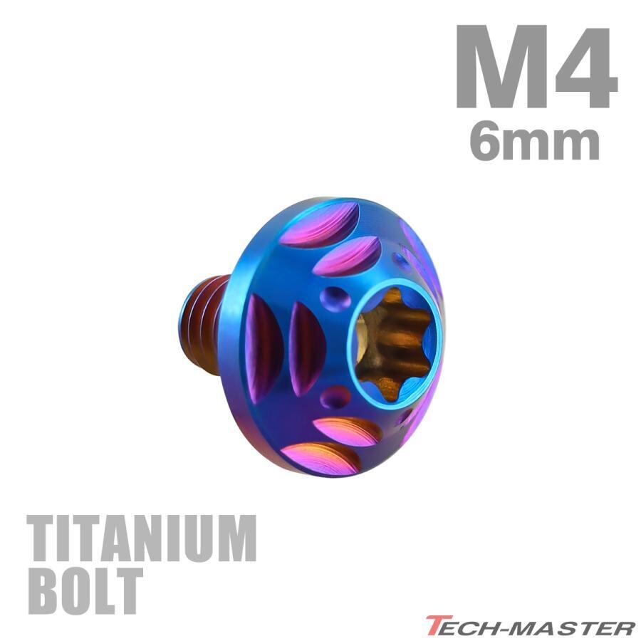 チタンボルト M4×6mm P0.7 トルクス穴 フランジ付き ボタンボルト 焼きチタンカラー 1個 JA2550