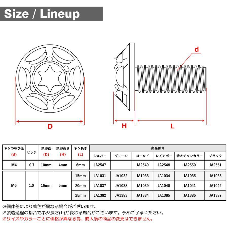 チタンボルト M4×6mm P0.7 トルクス穴 フランジ付き ボタンボルト ブラック 1個 JA2551