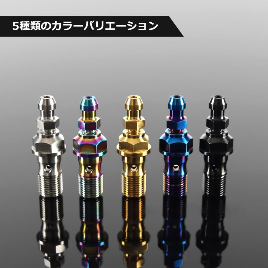 バンジョーボルト 64チタン M10 P1.0 エアブリード ニップル付 シングル 焼きチタンカラー JA2587