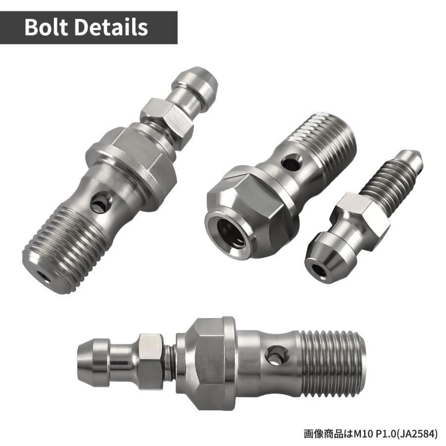 バンジョーボルト 64チタン M10 P1.25 エアブリード ニップル付 シングル シルバーカラー JA2589