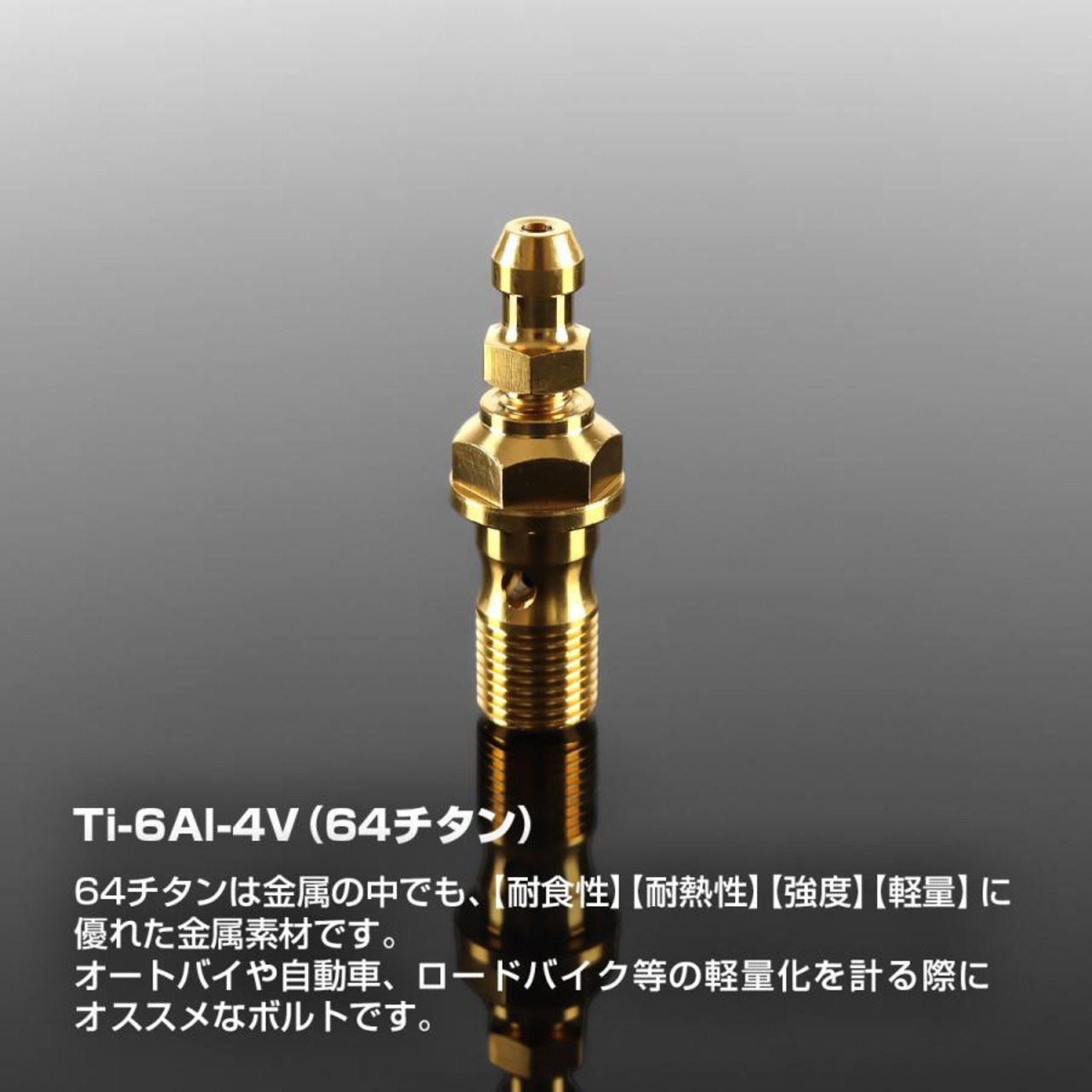 バンジョーボルト 64チタン M10 P1.25 エアブリード ニップル付 シングル ゴールドカラー JA2591