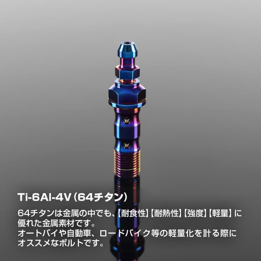 バンジョーボルト 64チタン M10 P1.0 エアブリード ニップル付 ダブル 焼きチタンカラー JA2597