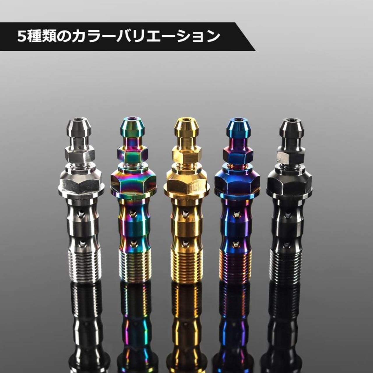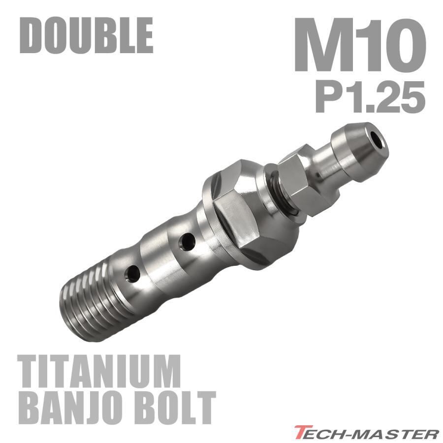 バンジョーボルト 64チタン M10 P1.25 エアブリード ニップル付 ダブル シルバーカラー JA2599