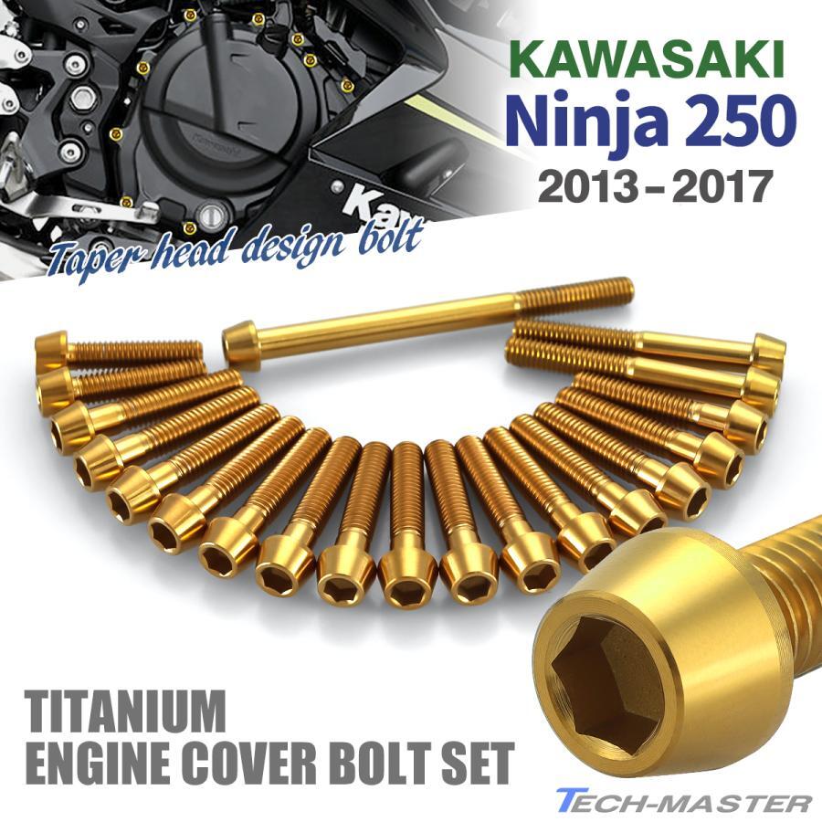 ニンジャ250 2013年-2017年 Ninja エンジンカバー クランクケース ボルト 20本セット チタン製 カワサキ車用 ゴールドカラー JA8353