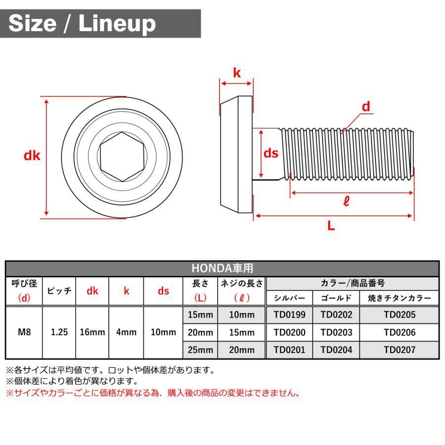 ブレーキディスク ローターボルト M8×25mm P1.25 ホンダ用 フラットヘッド マットタイプ ゴールドカラー TD0204