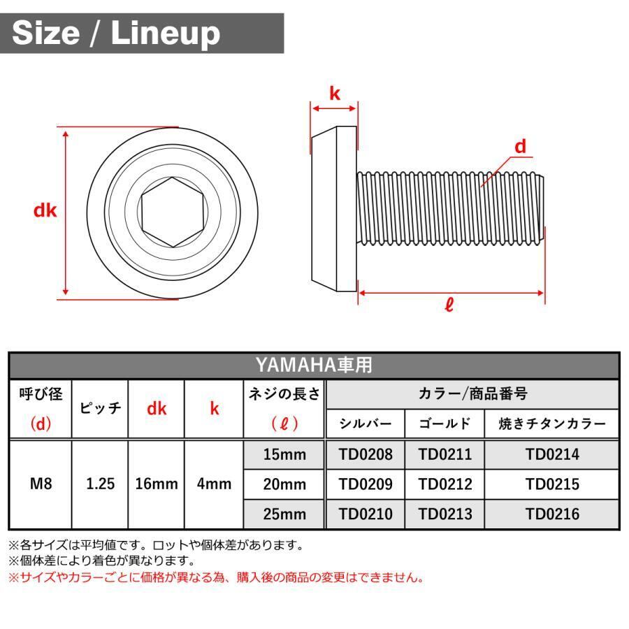 ブレーキディスク ローターボルト M8×20mm P1.25 ヤマハ用 フラットヘッド マットタイプ シルバーカラー TD0209