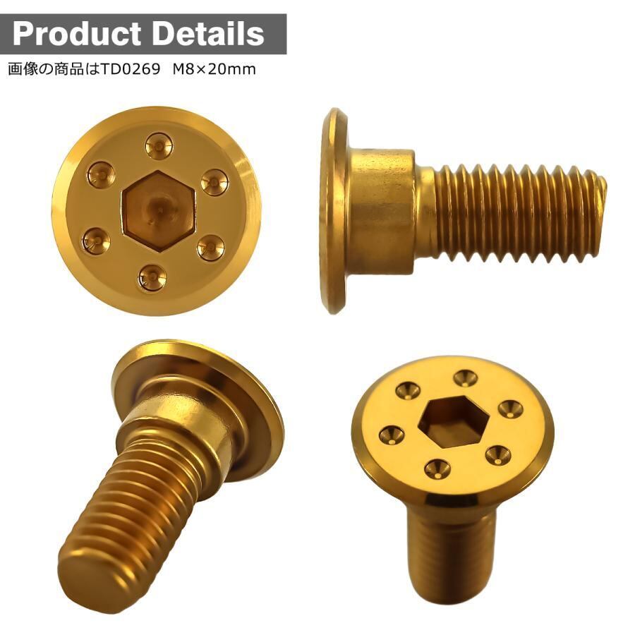 ブレーキディスク ローターボルト M8×15mm P1.25 ホンダ用 シンホールヘッド ゴールドカラー TD0268