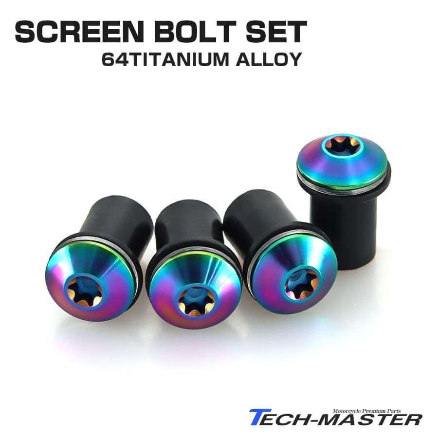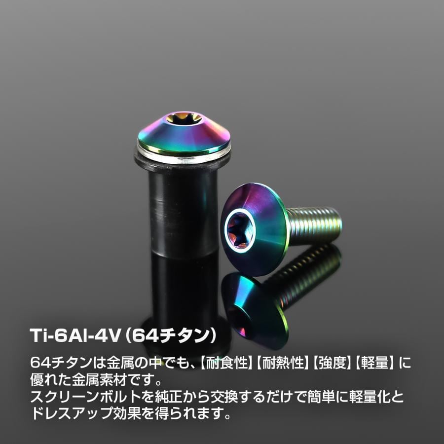 スクリーンボルト 64チタン製 4個セット ウェルナット PVCワッシャー セット カウル スクリーン カスタム ドレスアップ レインボー BS0222