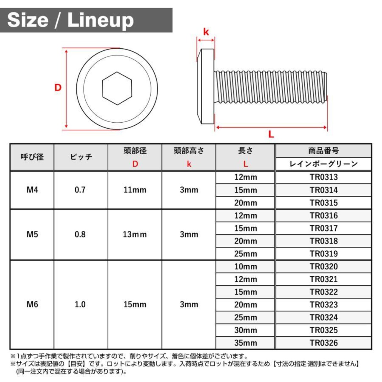 ステンレスボルト M5×12mm P0.8 フラットヘッド ボタンボルト レインボーグリーン TR0316