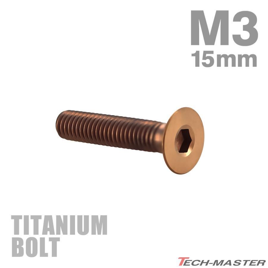 チタンボルト M3×15mm P0.5 皿ボルト 六角穴付き キャップボルト ブロンズカラー 1個 JA3005