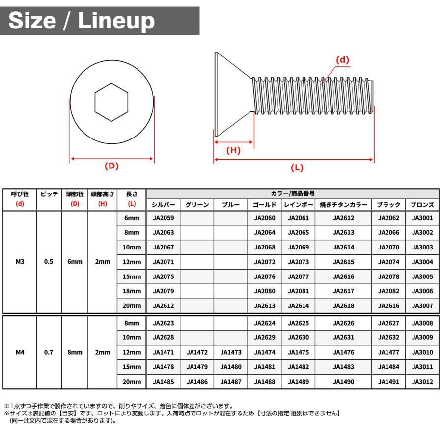 チタンボルト M4×15mm P0.7 皿ボルト 六角穴付き キャップボルト ブロンズカラー 1個 JA3011